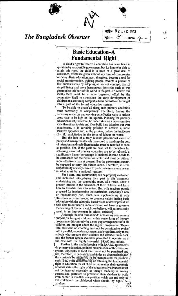 Basic education-a fundamental right Published on Newspaper The Bangladesh Observer Category Child Education Download