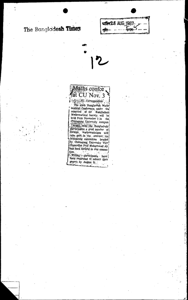Maths confce at cu nov. 3 Published on Newspaper The Bangladesh Times Category General Education General Education Higher Education Public Download
