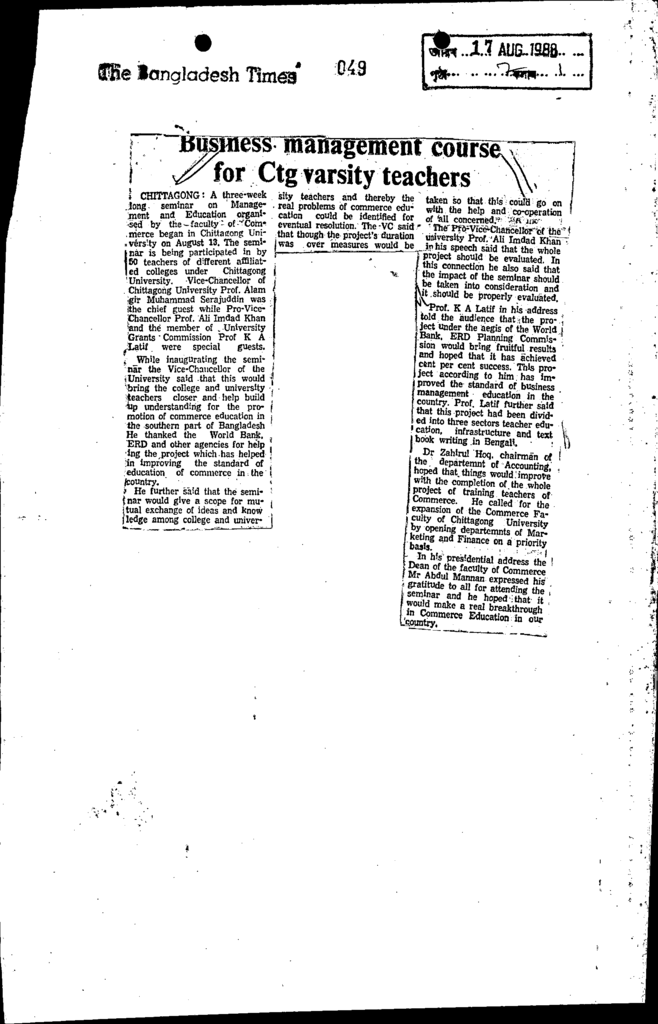 Business management course for ctg varsity teachers Published on Newspaper The Bangladesh Times Category General Education General Education Higher Education Public Download