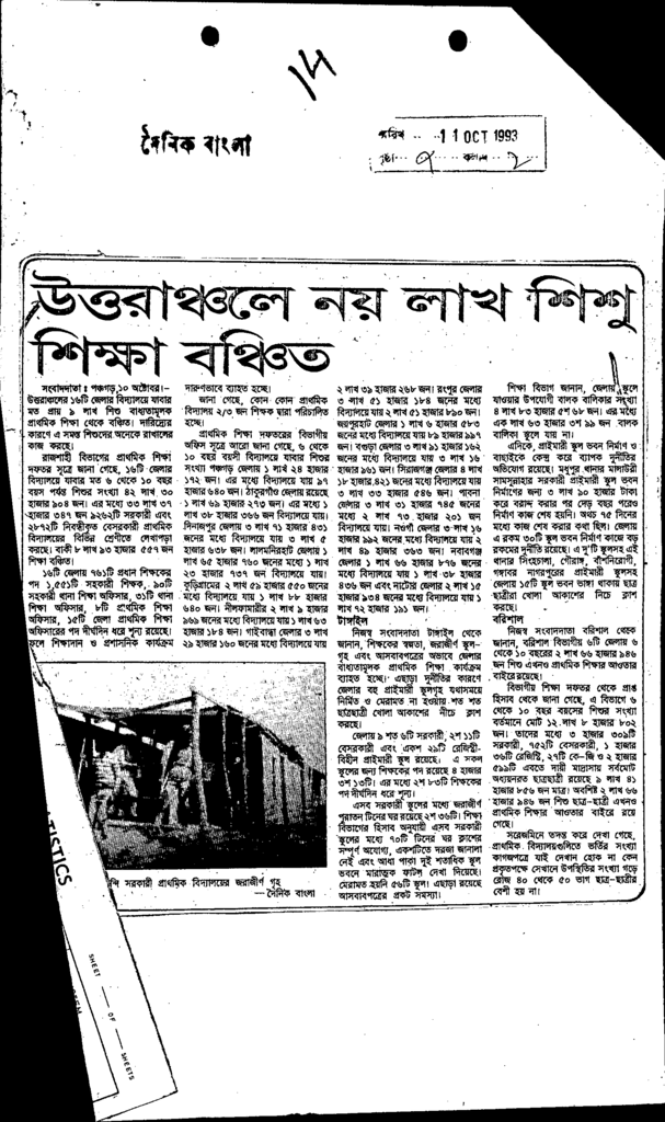 উত্তরাঞ্চলে নয় লাখ শিশু শিক্ষা বঞ্চিত Published on Newspaper দৈনিক বাংলা Category Child Education Download
