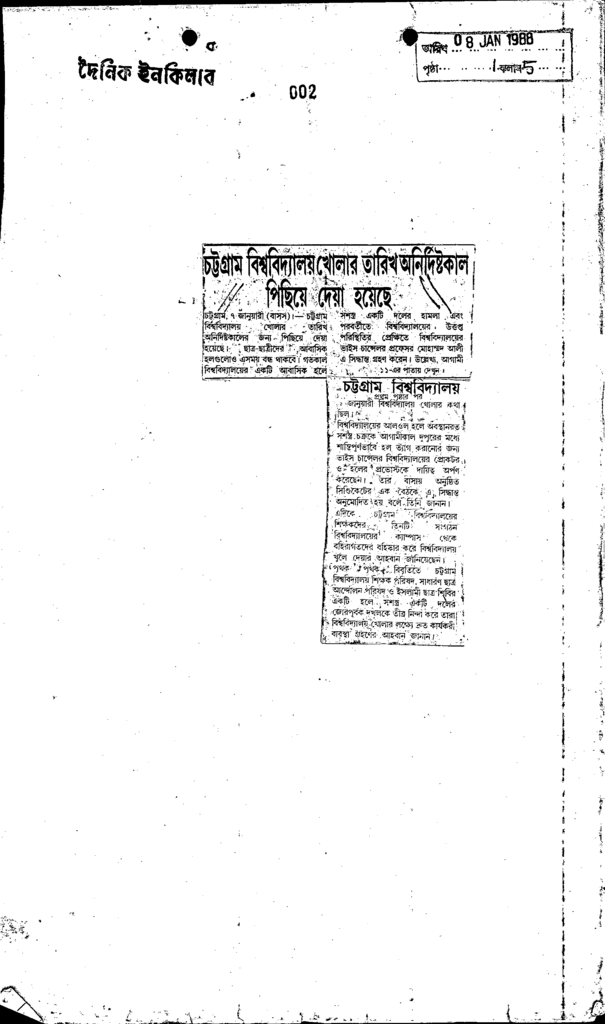 চট্টগ্রাম বিশ্ববিদ্যালয় খোলার তারিখ অনির্দিষ্টকাল পিছিয়ে দেয়া হয়েছে