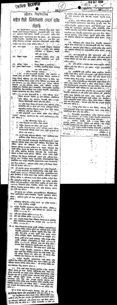 চট্টগ্রাম বিশ্ববিদ্যালয় মাস্টার ডিগ্রী প্রিলিমিনারী কোর্সে ভর্তির বিজ্ঞপ্তি