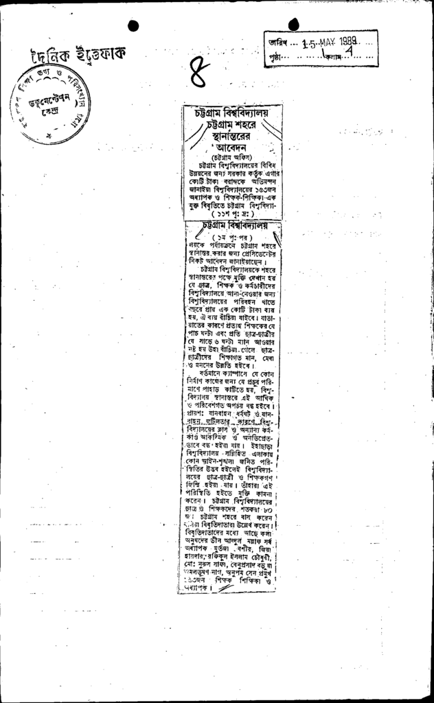 চট্টগ্রাম বিশ্ববিদ্যালয় চট্টগ্রাম শহরে স্থানান্তরের আবেদন Published on Newspaper দৈনিক ইত্তেফাক Category General Education General Education Higher Education Public Download