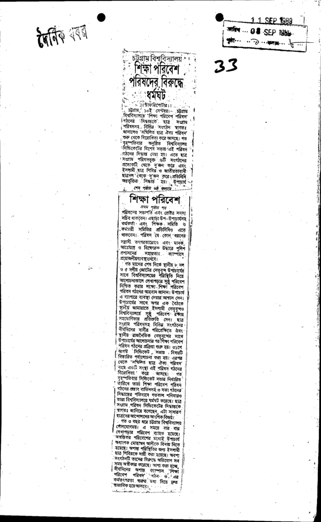 শিক্ষা পরিবেশ পরিষদের বিরুদ্বে ধর্মঘট