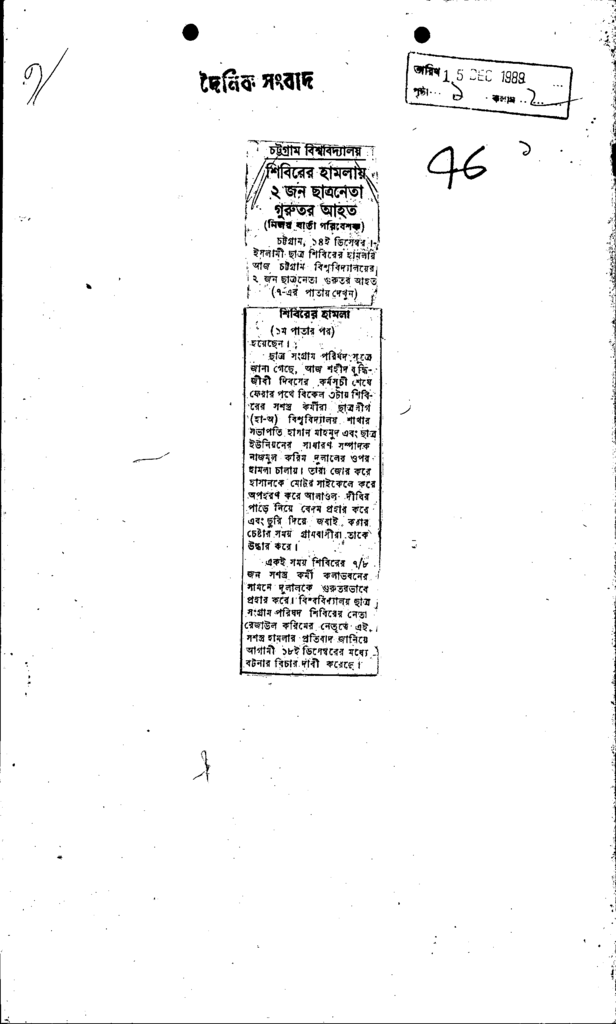 শিবিরের হামলায় ২জন ছাত্রনেতা গুরুতর আহত Published on Newspaper দৈনিক সংবাদ Category General Education General Education Higher Education Public Download