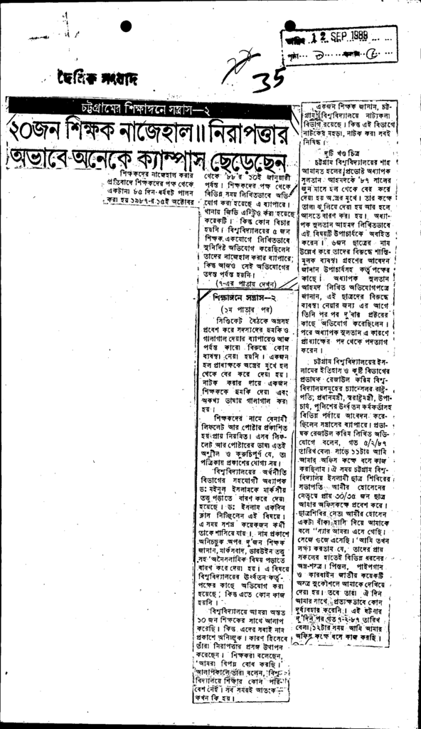 ২০ জন শিক্ষক নাজেহাল।। নিরাপত্তার অভাবে অনেকে ক্যাম্পাস ছেড়েছেন Published on Newspaper দৈনিক সংবাদ Category General Education General Education Higher Education Public Download
