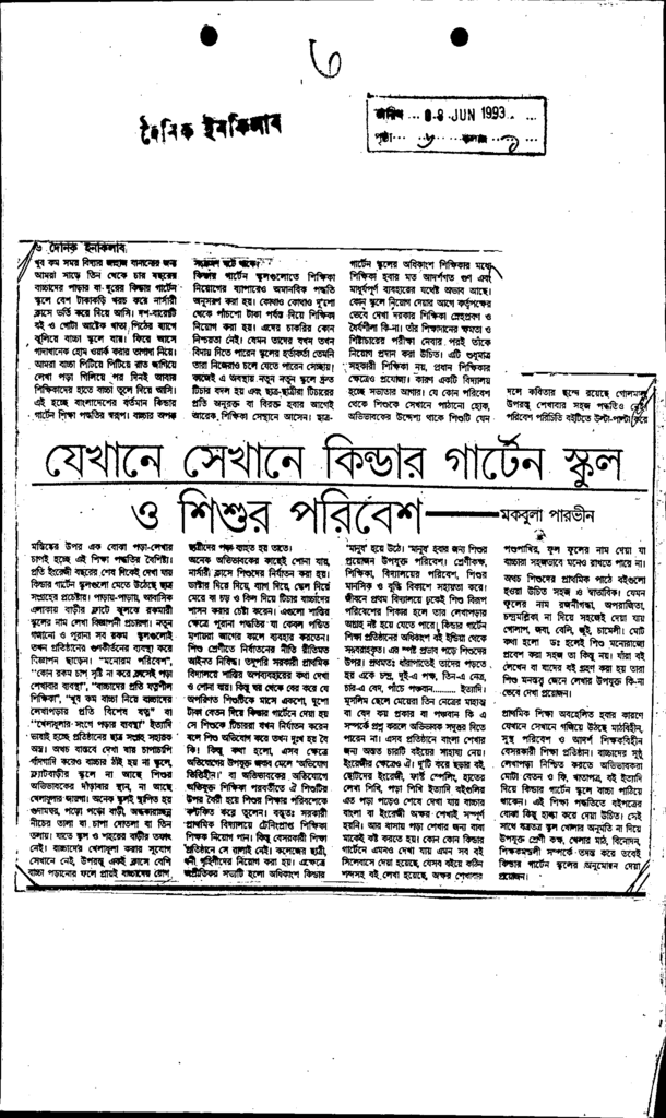 যেখানে সেখানে কিন্ডার গার্টেন স্কুল ও শিশুর পরিবেশ Published on Newspaper দৈনিক ইনকিলাব Category Child Education Download