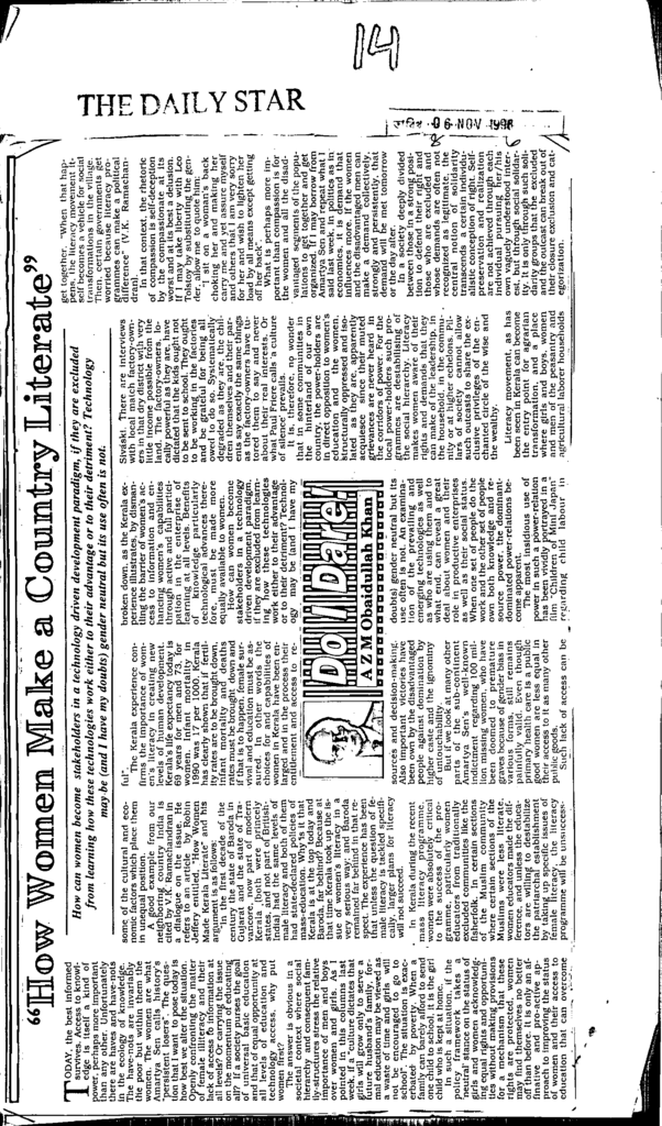 How women make country literate Published on Newspaper The Daily Star Category Women Education Download