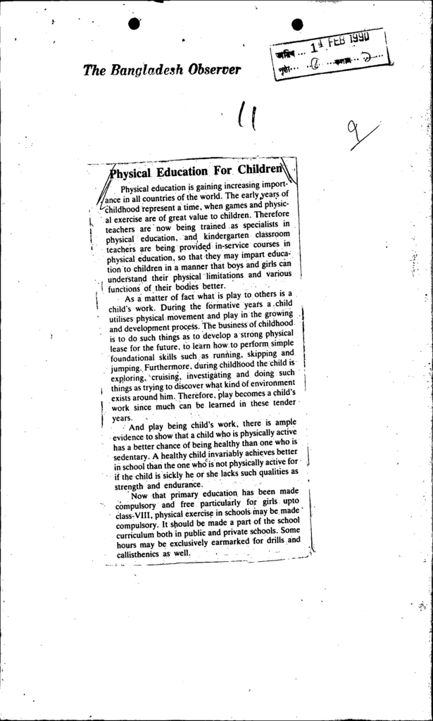 Physical education for children Published on Newspaper The Bangladesh Observer Category Child Education Download