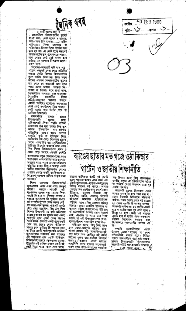 ব্যাঙেগর ছাতার মত গজে ওঠা নিন্ডার গার্টেন ও জাতীয় শিক্ষানীতি