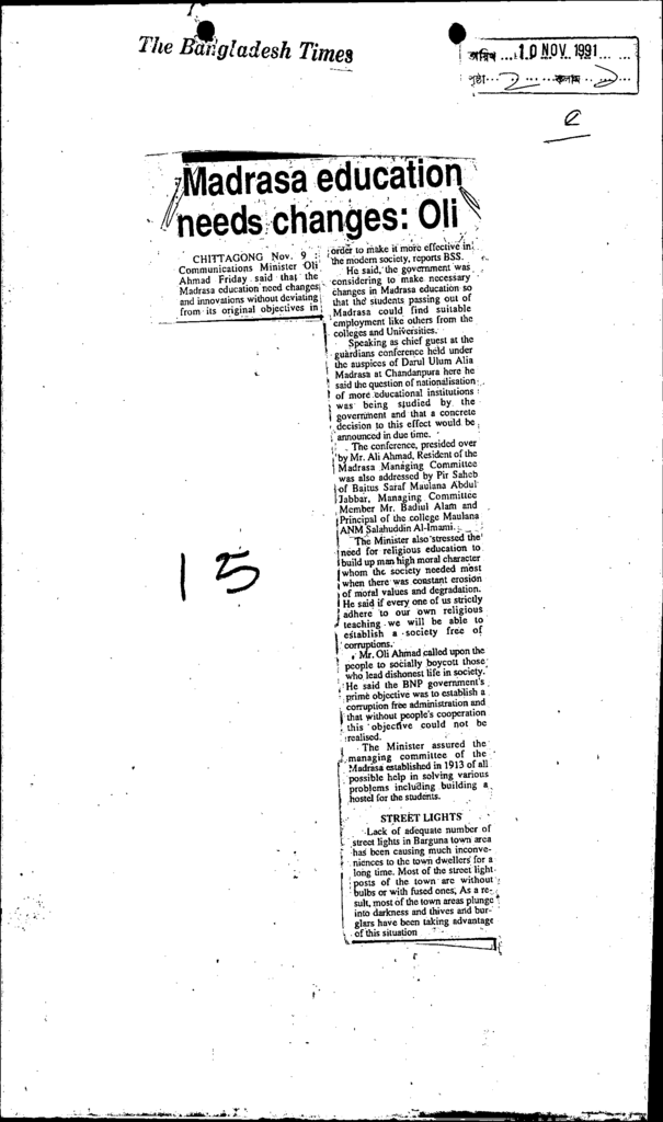 Madrasa education needs changes. oli Published on Newspaper The Bangladesh Times Category Madrasah Education Madrasah Education Alia Download