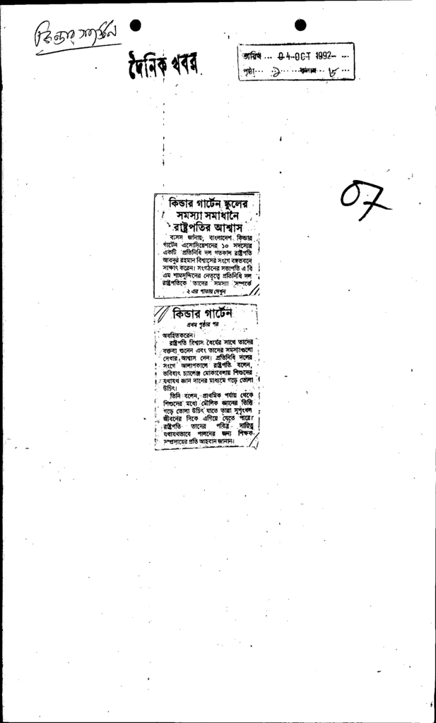 কিন্ডার গার্টেন স্কুলের সমস্যা সমাধানে রাষ্ট্রপতির আশ্বাস Published on Newspaper দৈনিক খবর Category Child Education Download