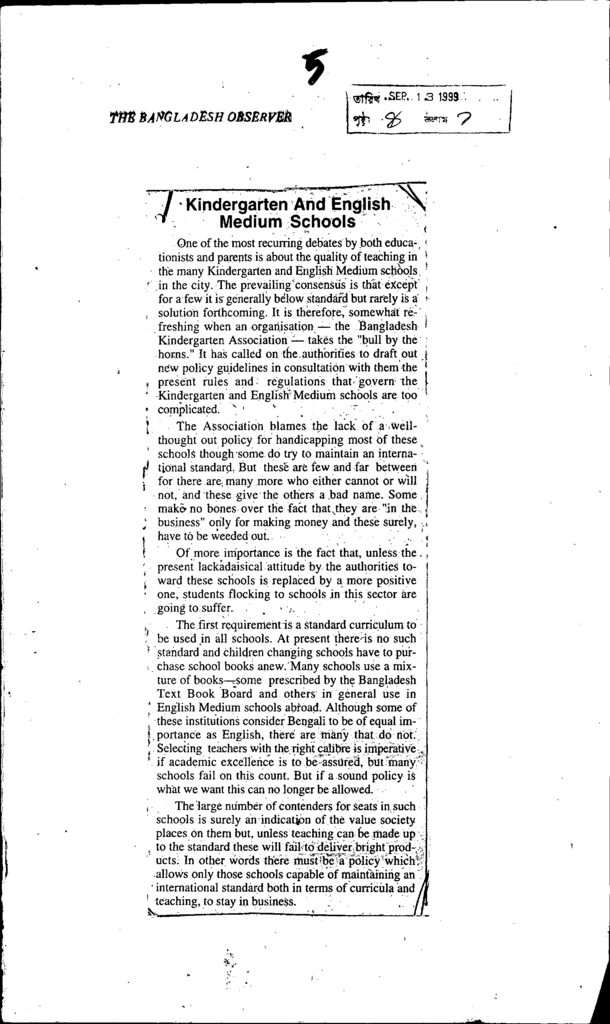 Kindergarten adn english medium schools Published on Newspaper The Bangladesh Observer Category Child Education Download