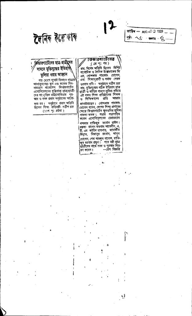 কিন্ডার গার্টেনেরছাত্র-ছাত্রীদের সামনে মুক্তিযুদ্ধের ইতিহাস Published on Newspaper দৈনিক ইত্তেফাক Category Child Education Download