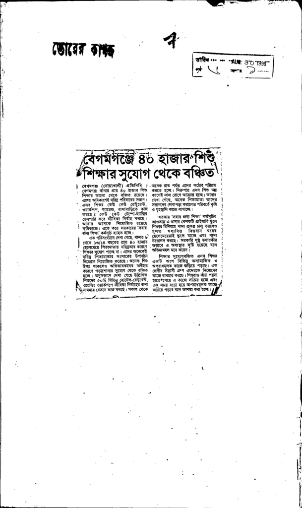 বেগমগঞ্জে ৪০ হাজার শিশু শিক্ষার সুযোগ থেকে বঞ্চিত Published on Newspaper দৈনিক ভোরের কাগজ Category Child Education Download
