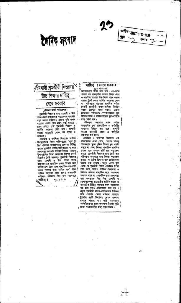 মেধাবী শ্রশজীবী শিশুদের উচ্চ শিক্ষার দায়িত্ব নেবে সরকার Published on Newspaper দৈনিক সংবাদ Category Child Education Download