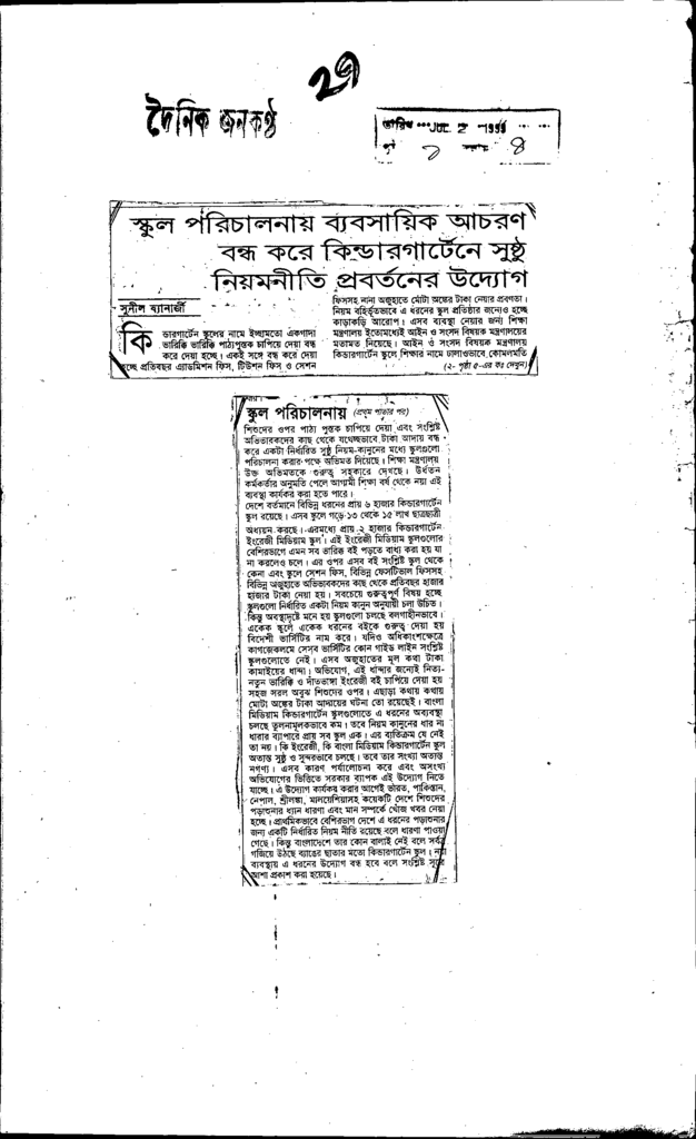 স্কুল পরিচালনায় ব্যাবসায়িক আচরণ বন্ধ করে কিন্ডরগার্টেনে সুষ্ঠু