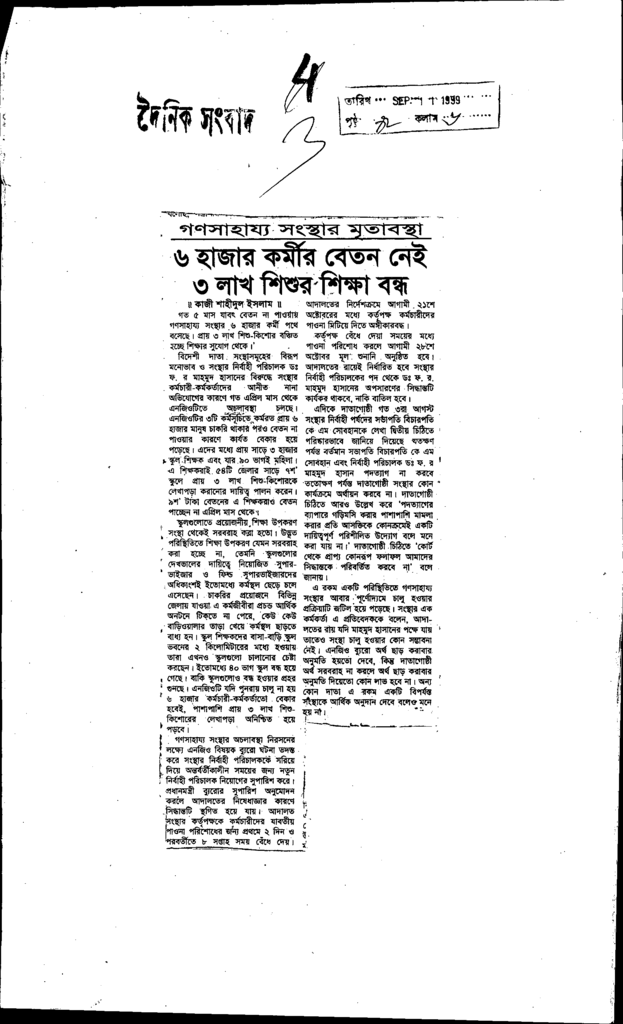 ৬হাজার কর্মীর বেতন নেই ৩ লাখ শিুর শিক্ষা বন্ধ Published on Newspaper দৈনিক সংবাদ Category Child Education Download