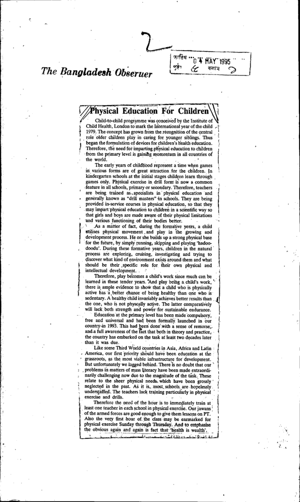 Physical education for chlodrn Published on Newspaper The Bangladesh Observer Category Child Education Download