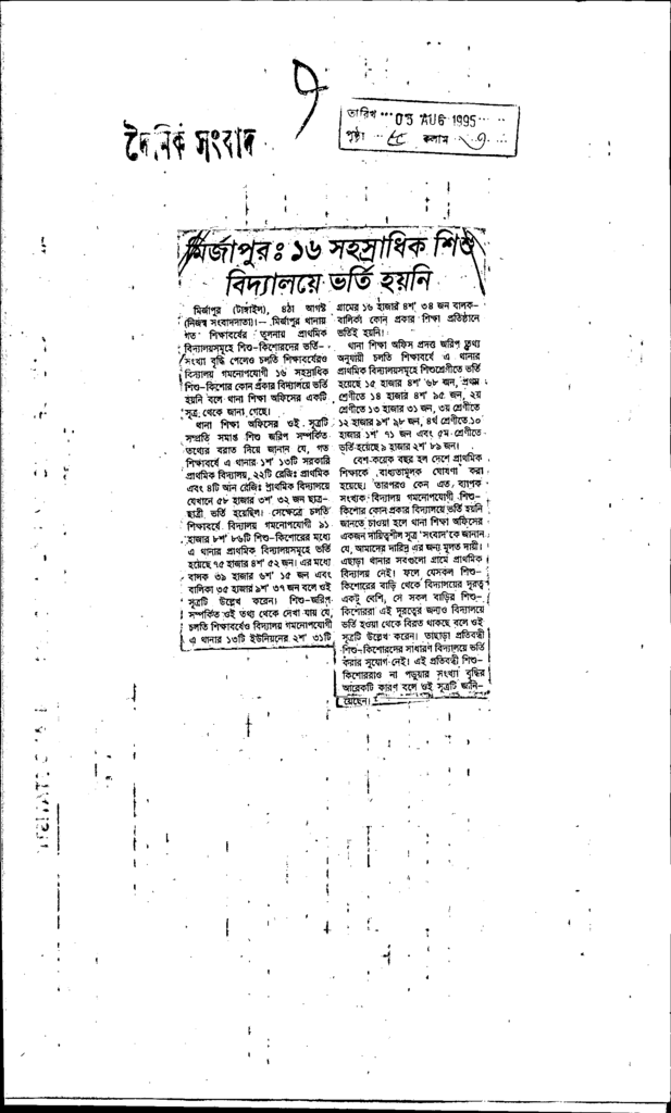 সির্জাপুর ১৬ সহস্রাধিক শিশু বিদ্যালয়ে ভর্তি হয়নি