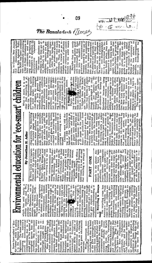 Environmental education for 'eco-smart'chidren Published on Newspaper The Bangladesh Times Category Child Education Download