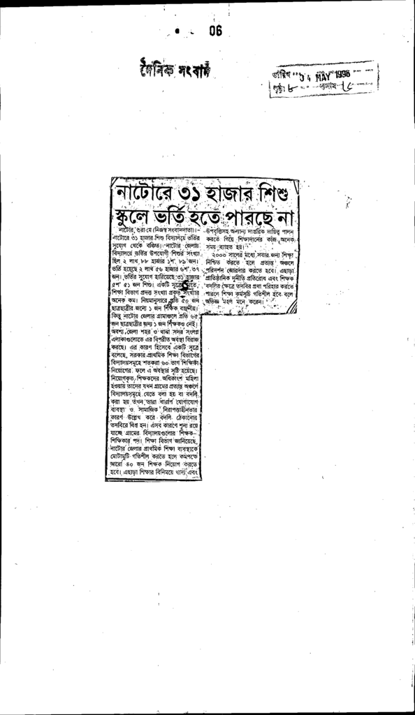 নাটোরে ৩১ হাজার শিশু স্কুলে ভর্তি হতে পারছে না Published on Newspaper দৈনিক সংবাদ Category Child Education Download