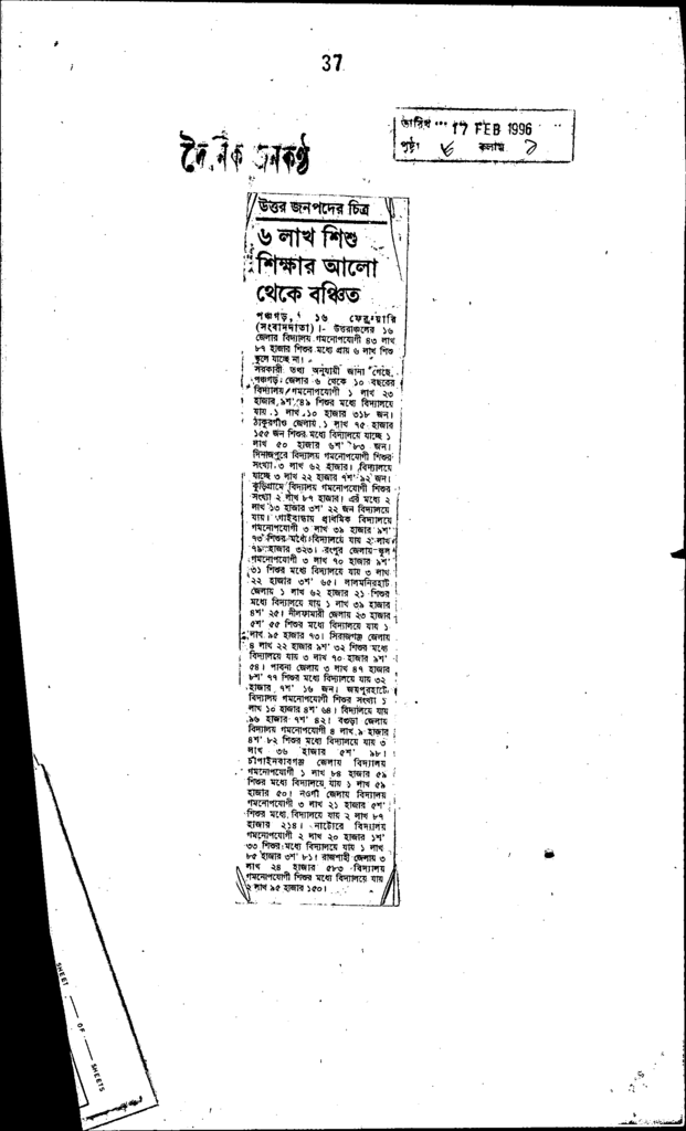৬ লাখ শিশু শিক্ষার আলো থেকে বঞ্চিত Published on Newspaper দৈনিক জনকণ্ঠ Category Child Education Download