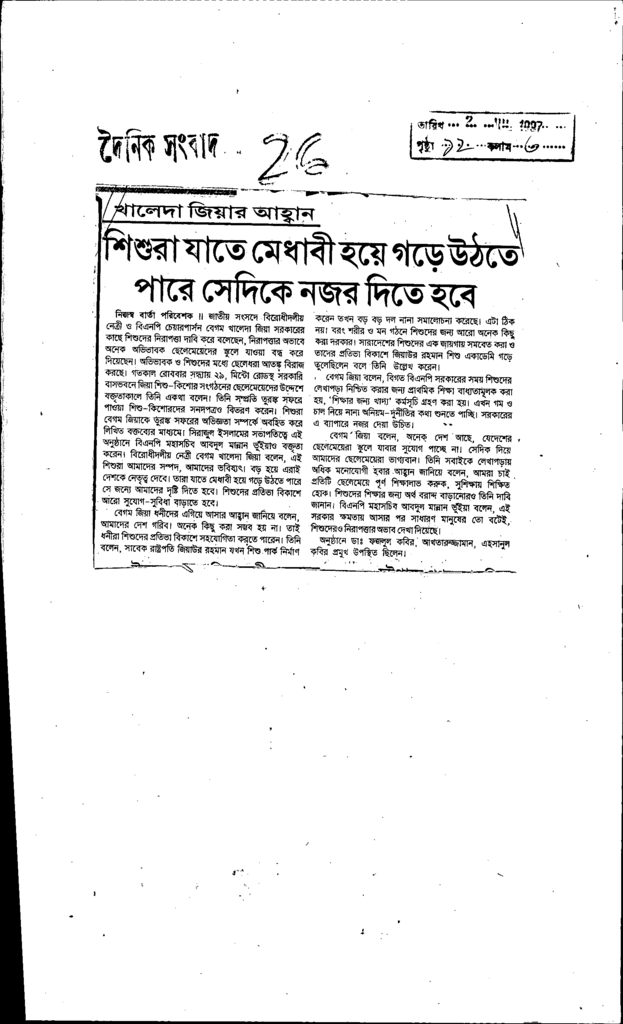 শিশুরা যাতে মেধাবী হয়ে গড়ে উঠতে পারে দেদিকে নজর দিতে হবে Published on Newspaper দৈনিক সংবাদ Category Child Education Download