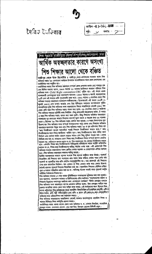 আর্থিক অস্বচছলতার কারণে অসংখ্য শিশু শিক্ষার আলো থেকে বঞ্চিত Published on Newspaper দৈনিক ইনকিলাব Category Child Education Download