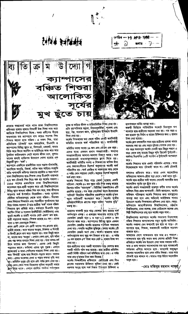 ক্যাম্পসের বঞ্চিত শিশুরা আলোকিত সূর্যের মুখ ছুঁতে চায় Published on Newspaper দৈনিক ইনকিলাব Category Child Education Download