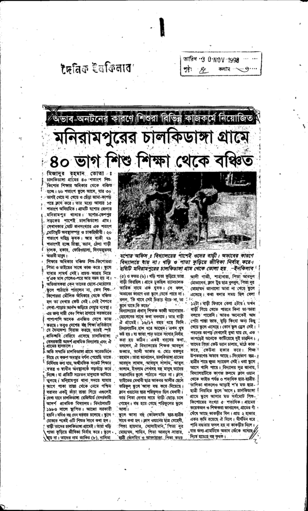 মনিরামপুরের চালকিডাঙ্গা গ্রামে ৪০ ভাগ শিক্ষা থেকে বঞ্চিত Published on Newspaper দৈনিক ইনকিলাব Category Child Education Download