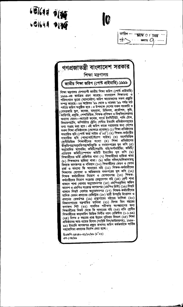 জাতীয় শিক্ষা জরিপ(পোস্ট প্রাইমারি)-১৯৯৯ Published on Newspaper দৈনিক ভোরের কাগজ Category Educational Survey Download