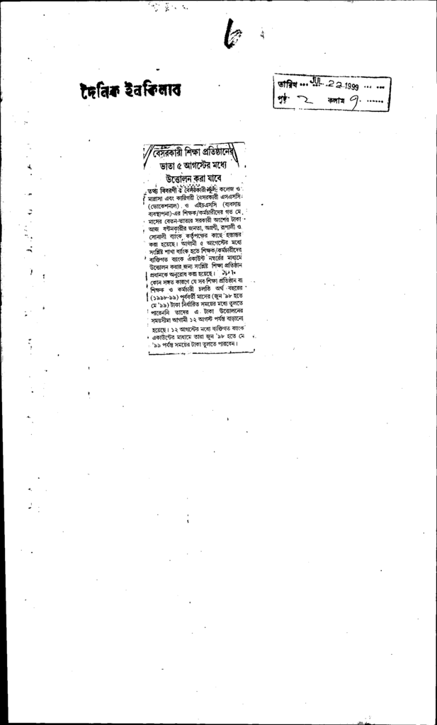 বেসরকারী শিক্ষা প্রতিষ্ঠানের ভাতা ৫ আগস্টের মধ্যে উত্তোলন করা হবে