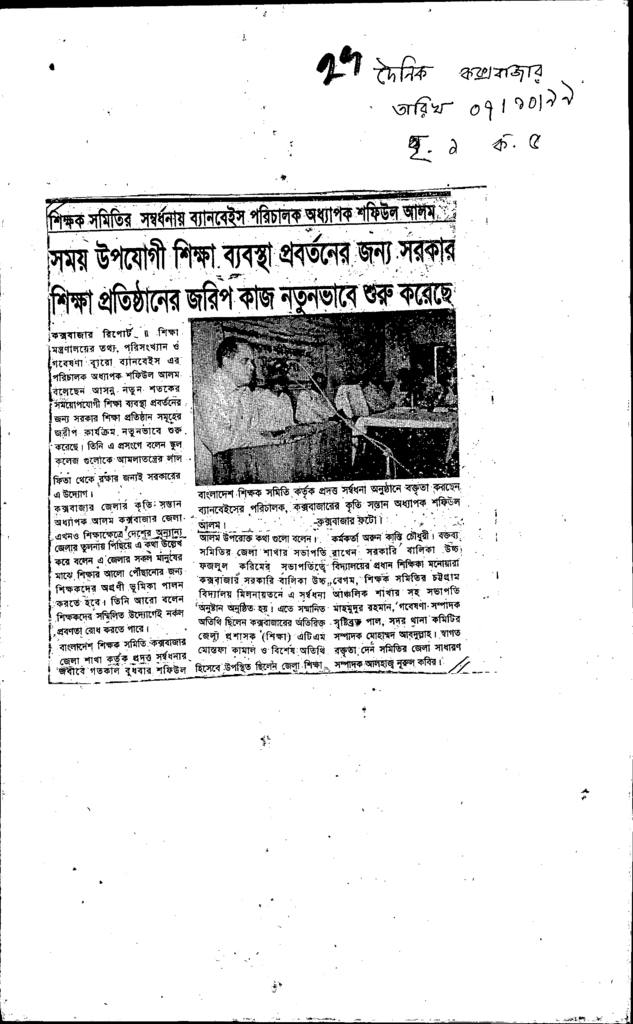সময় উপযোগী শিক্ষা ব্যবস্থা প্রবর্তনের জন্য সরকার শিক্ষা প্রতিষ্ঠানের জরিপ কাজ নতুন ভাবে শুরু করেছে Published on Newspaper দৈনিক কক্সবাজার Category Educational Survey Download