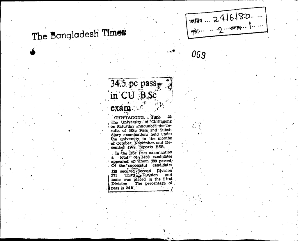 34.5 pc pass in cu b.sc exam Published on Newspaper The Bangladesh Times Category Educational Survey Download