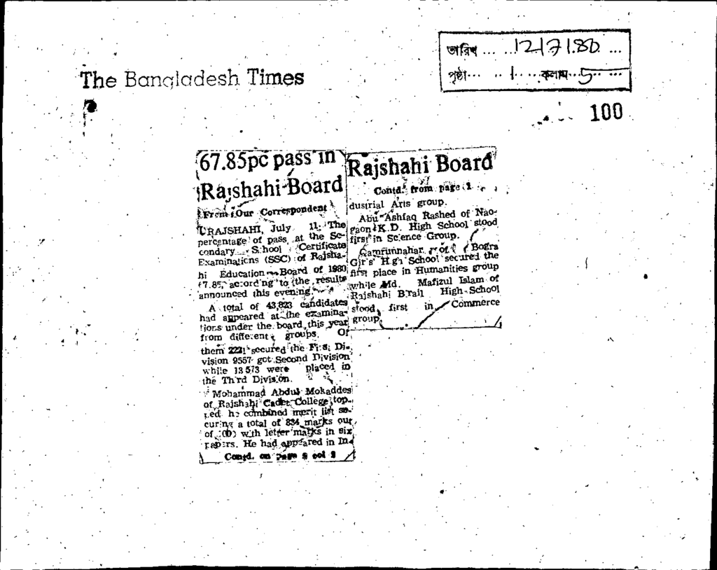 67.85 pc pass in rajshahi board Published on Newspaper The Bangladesh Times Category Educational Survey Download