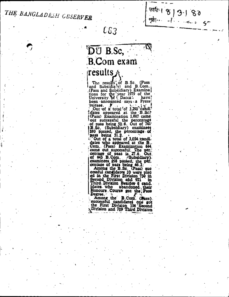 Du b.sc,b.com exam results Published on Newspaper The Bangladesh Observer Category Educational Survey Download