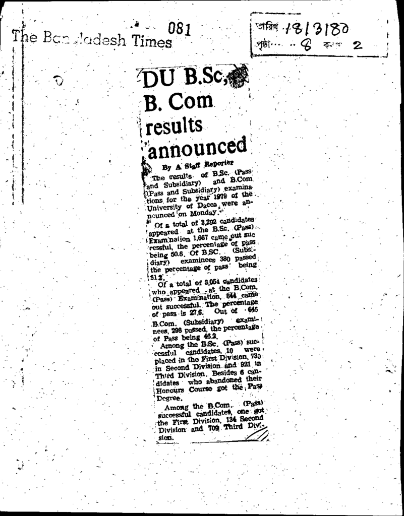 Du b.sc, b.com results announced Published on Newspaper The Bangladesh Times Category Educational Survey Download