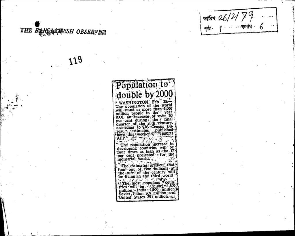 Population to double by 2000 Published on Newspaper The Bangladesh Observer Category Educational Survey Download