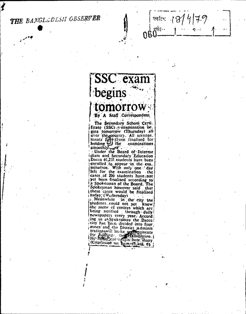Ssc exam begins tomorrow Published on Newspaper The Bangladesh Observer Category Educational Survey Download
