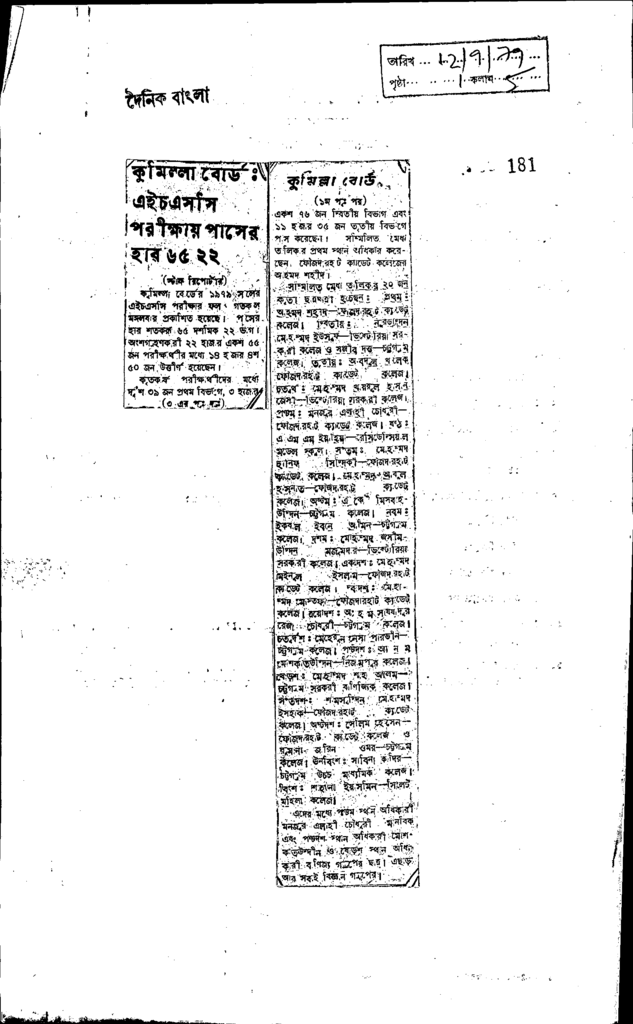 কুমিল্লা বোর্ড: এইচএসসি পরীক্ষায় পাসের হার ৬৫.২২ Published on Newspaper দৈনিক বাংলা Category Educational Survey Download