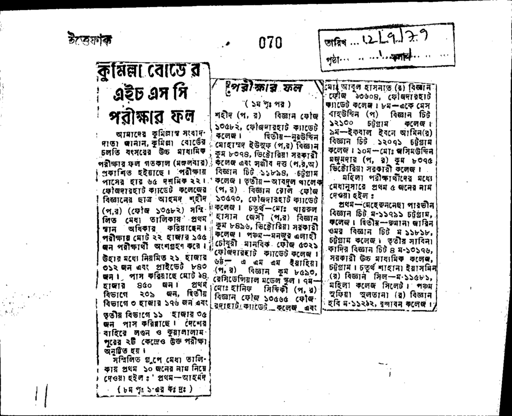 কুমিল্লা বোর্ডের এইচ এস সি পরীক্ষার ফল Published on Newspaper দৈনিক ইত্তেফাক Category Educational Survey Download