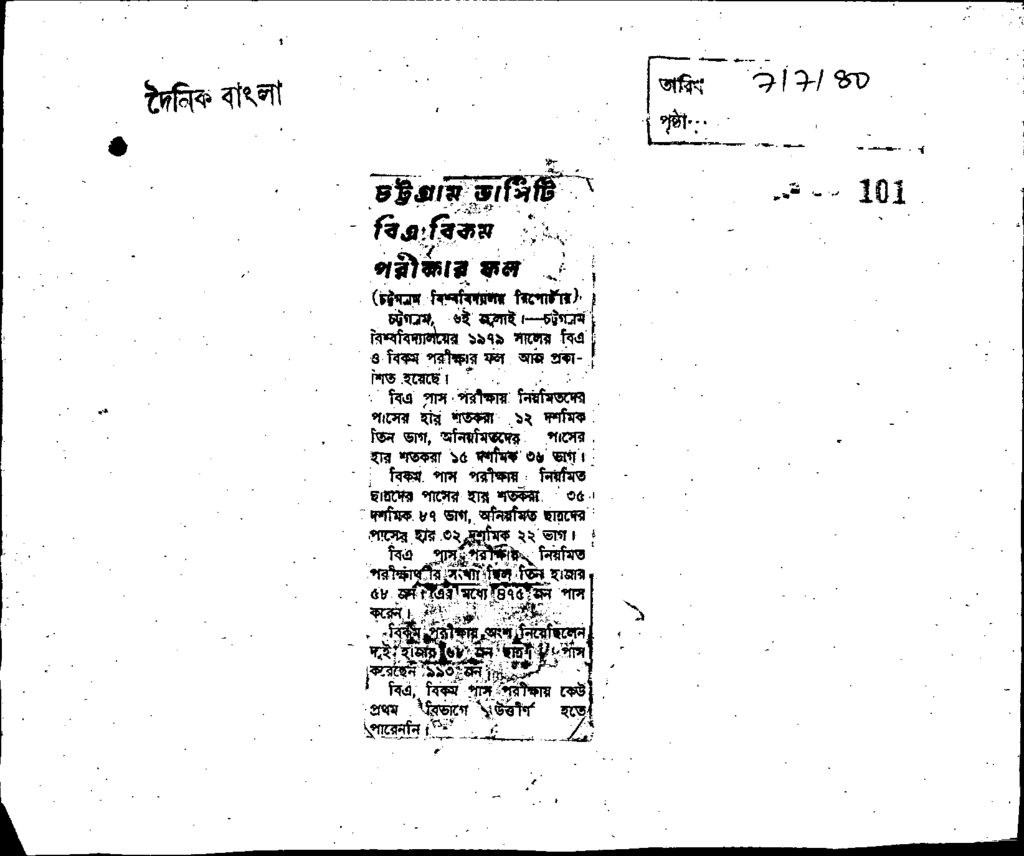 চট্টগ্রাম ভার্সিটি বিএ বিকম পরীক্ষার ফল Published on Newspaper দৈনিক বাংলা Category Educational Survey Download