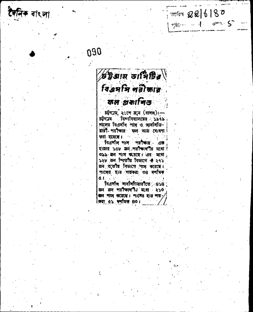 চট্টগ্রাম ভার্সিটির বিএসসি পরীক্ষার ফল প্রকাশিত Published on Newspaper দৈনিক বাংলা Category Educational Survey Download