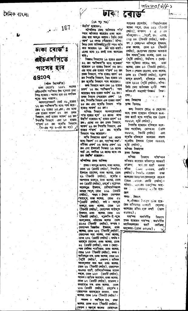 ঢাকা বোর্ড:এইচএসসিতে পাসের হার ৫৪.০৭ Published on Newspaper দৈনিক বাংলা Category Educational Survey Download