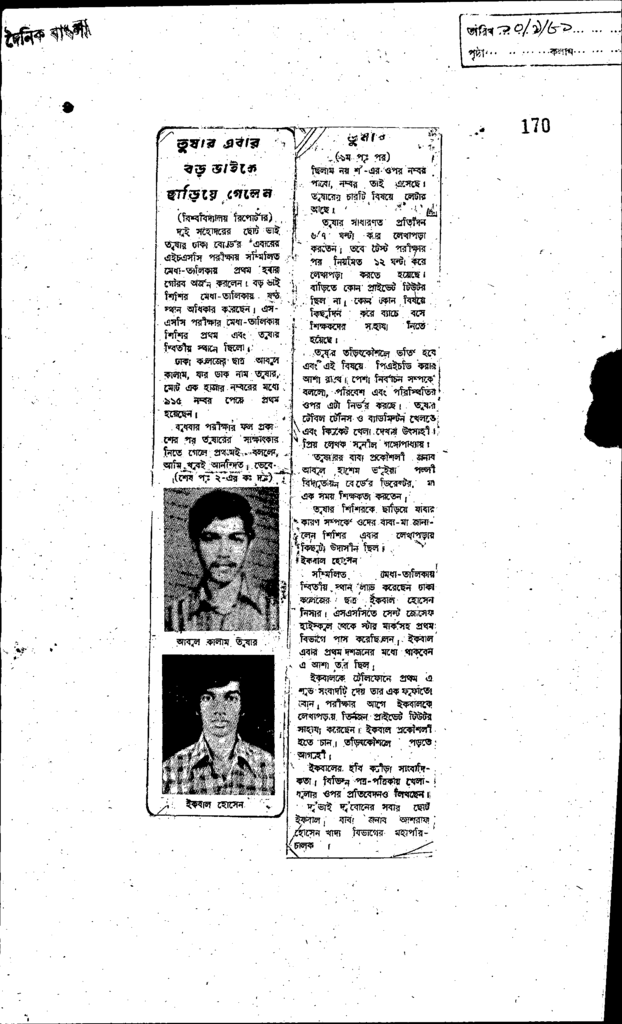 তুষার এবার বড় ভাইকে ছাড়িয়ে গেলেন Published on Newspaper দৈনিক বাংলা Category Educational Survey Download