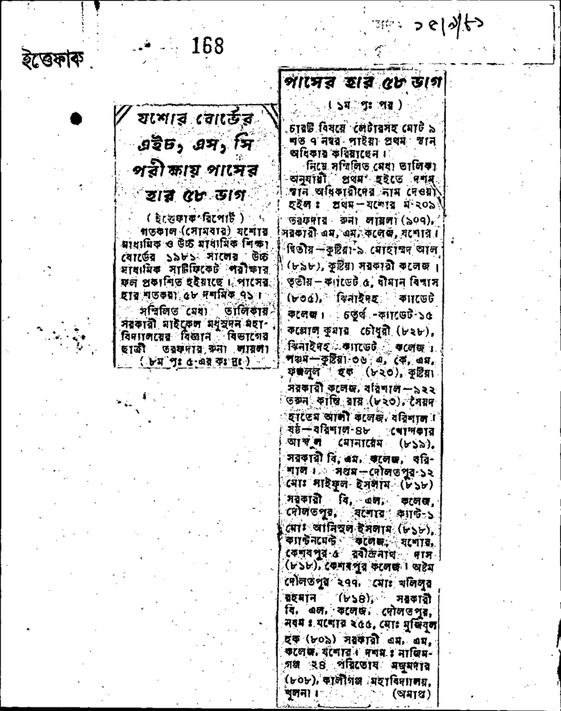 যশোর বোর্ডের এইচ,এস,সি পরীক্ষায় পাসের হার ৫৮ভাগ Published on Newspaper দৈনিক ইত্তেফাক Category Educational Survey Download