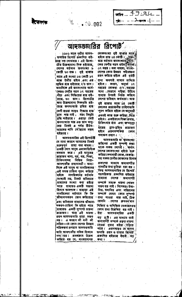 আদমশুমারির রিপোর্ট