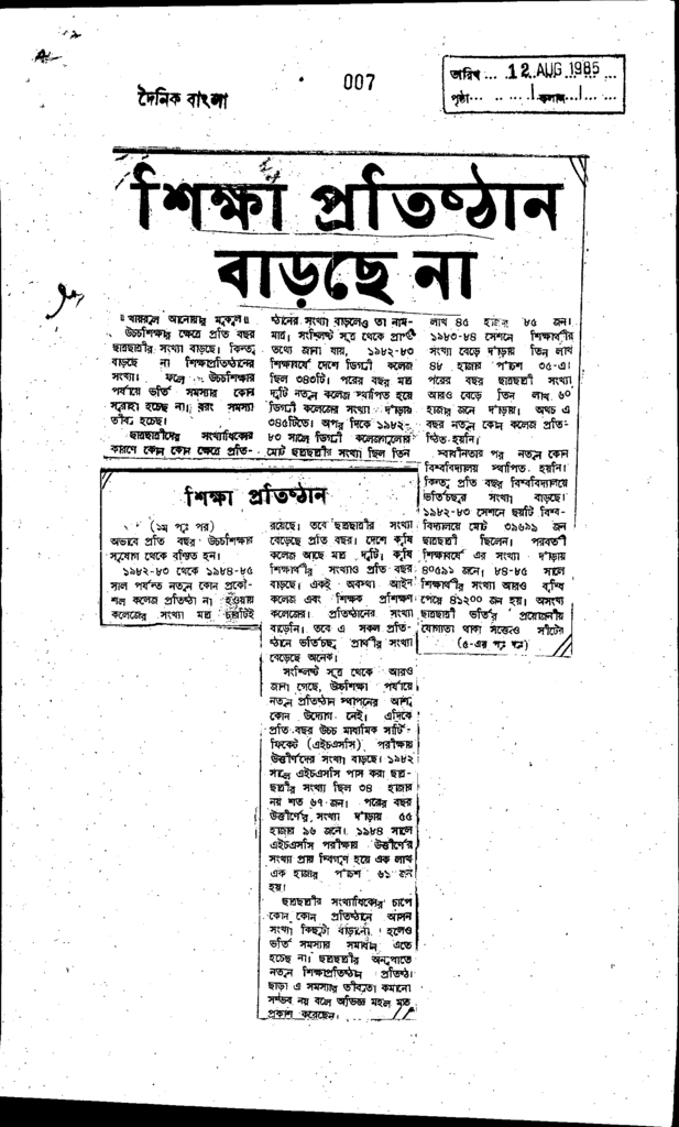শিক্ষা প্রতিষ্ঠান বাড়ছে না
