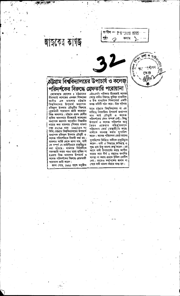 চট্টগ্রাম বিশ্ববিদ্যালয়ের উপাচার্য ও কলেজ পরিদর্শকের বিরুদ্বে গ্রেফতারি পরোয়ানা